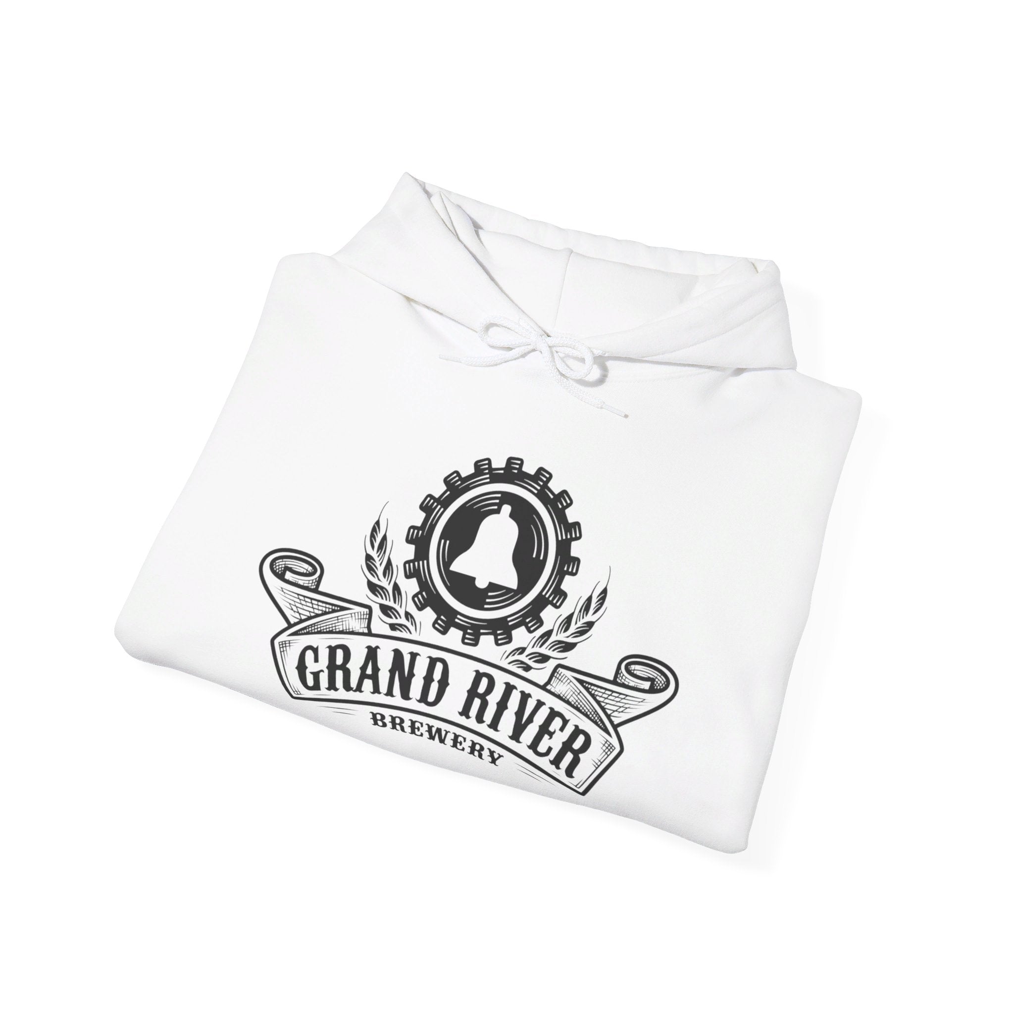 Showcase your love for craft beer with our Grand River Brewery Hoodie! Featuring a vintage-inspired logo with the iconic bell and wreath design, this hoodie is perfect for beer enthusiasts and casual wearers alike. The clean black and white graphic adds a touch of elegance while representing your favorite local brewery in style.